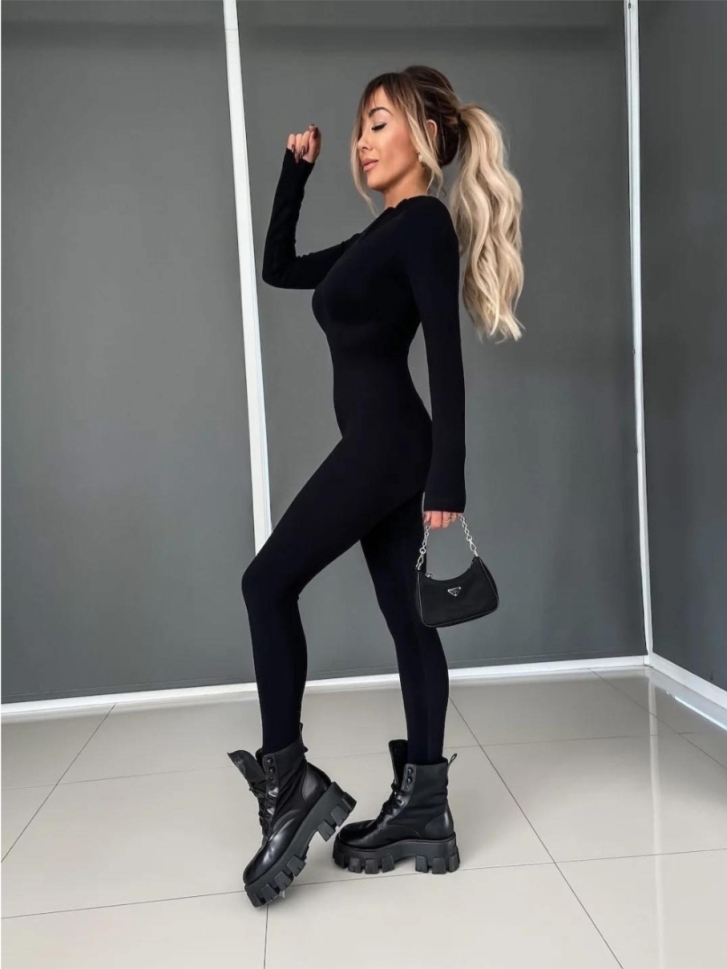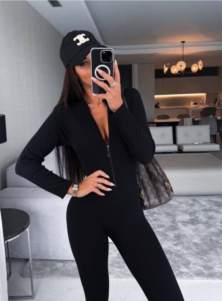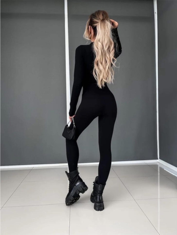 Стегнат оформящ гащеризон с цип , изработен от висококачествен рипс .